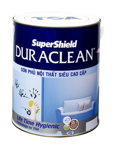 | Sơn nước Nội thất Cao cấp Duraclean là loại sơn nước đầu tiên và duy nhất mang lại lợi ích tối đa về khả năng chùi rửa và vệ sinh an toàn. Không chỉ có khả năng lau chùi dễ dàng gấp 20 lần, sơn nước Nội thất Cao cấp SuperShield Duraclean còn có khả năng kháng khuẩn với công nghệ Microban® của Mỹ. |